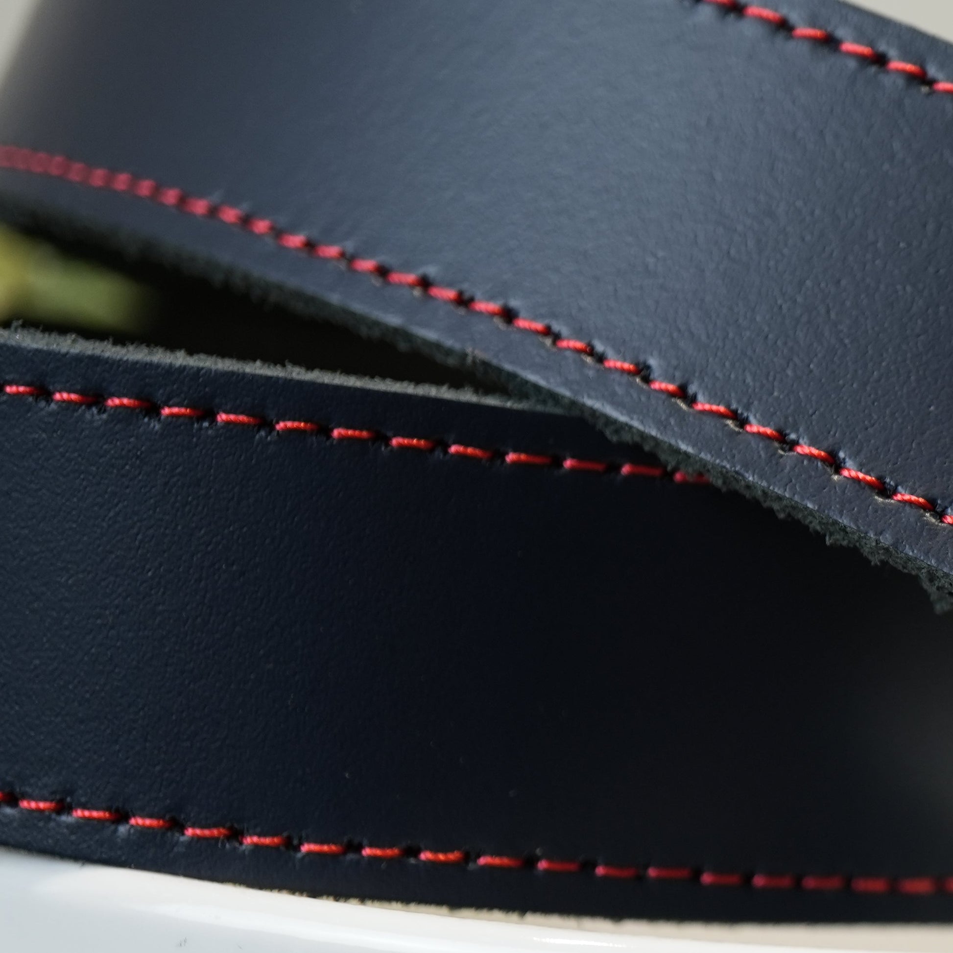 Hand Made Leather Belt - 30mm Navy with Red Stitch